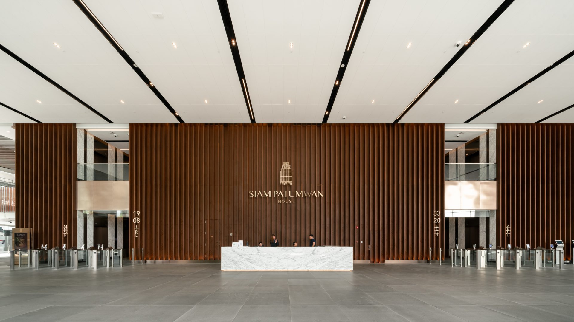 Siam Patuwan House – Grade A offices height of building offering 33 Floors, Land Area about 4.3–60.90 rais, leasable area around 51,000 sqm with the largest floor plate up to 2,300 sqm on each floor and expansive Three-metre high ceilings to support tenants’ need
